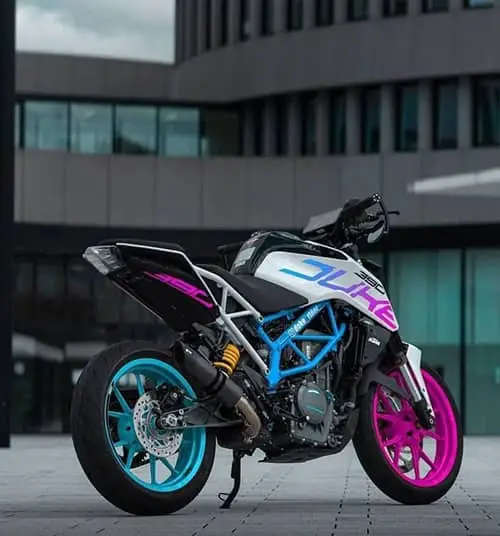 یکی دیگر از ویژگیهای طراحی که بر جذابیت این موتور میافزاید، استفاده از رنگهای متنوع و جسورانه است. KTM با انتخاب رنگهای زنده و متمایز نظیر نارنجی، سفید و مشکی، Duke 390 را به یک موتورسیکلت چشمنواز و قابل توجه در خیابانها تبدیل کرده است. به علاوه، موقعیت قرارگیری فریم، روغنکاری و سیستمهای مختلف موتور، به شکلی طراحی شدهاند که علاوه بر زیبایی، کارایی بهینهای در عملکرد موتور به ارمغان بیاورد.