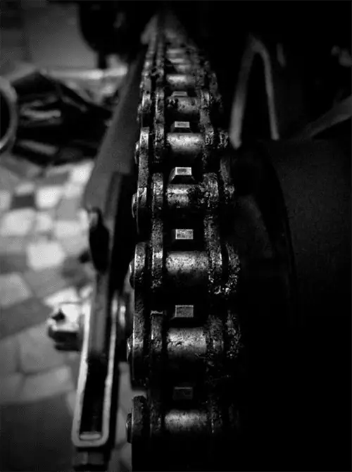 زنجیر را از نظر وجود نقاط ساییدهشده یا زنگزدگی بررسی کنید. زنگزدگی میتواند عملکرد روان زنجیر را مختل کند و باعث کاهش عمر آن شود.