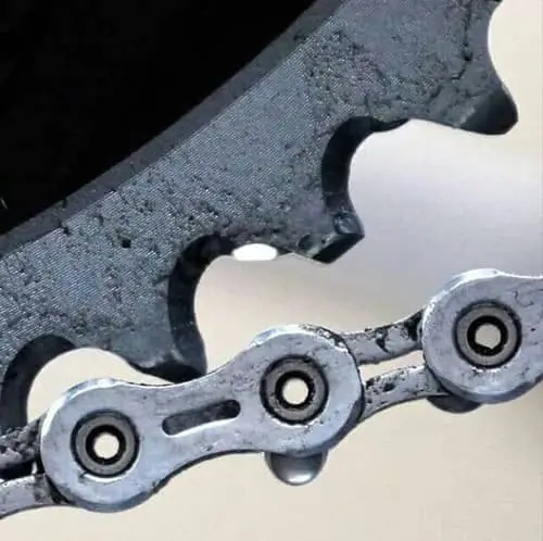 دندههای مرتبط با زنجیر را نیز بررسی کنید. هرگونه خمیدگی یا ساییدگی دندهها میتواند به زنجیر آسیب بزند.